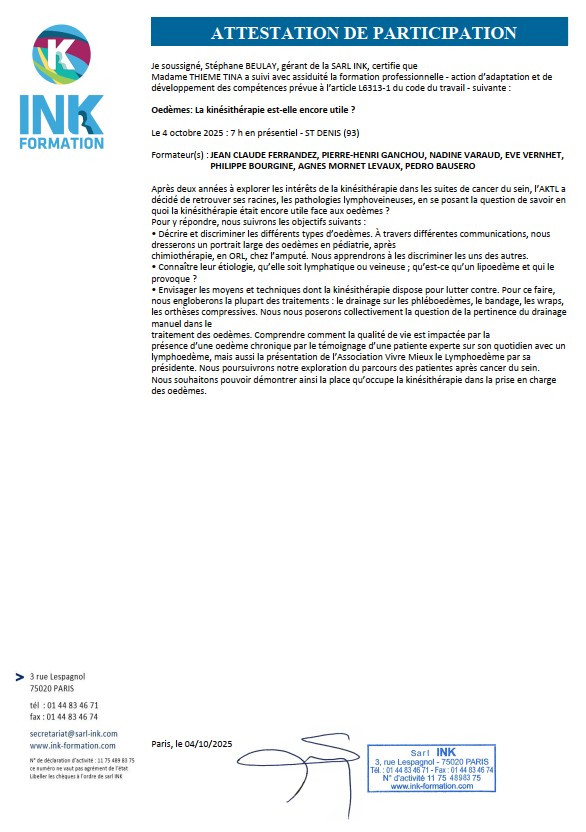 - Formation en drainage lymphatique manuel lymphatique/veineux